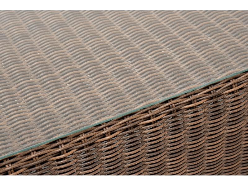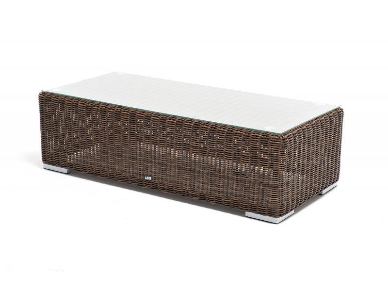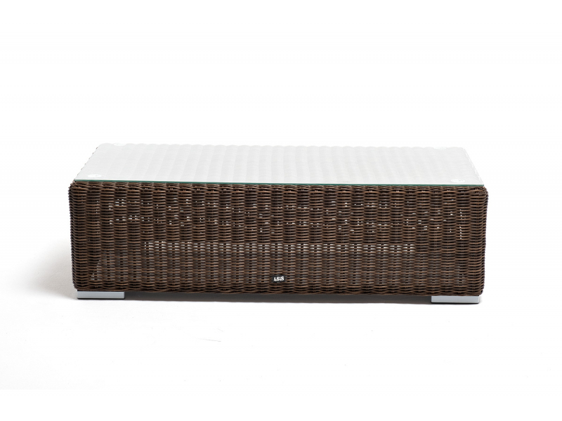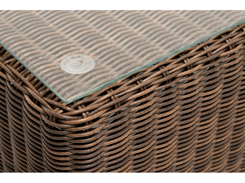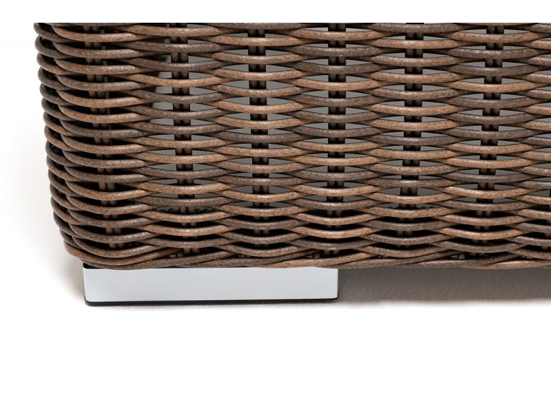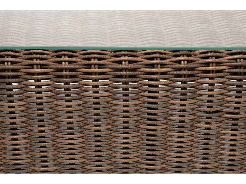 Каркас столика изготовлен из алюминия, вручную оплетенного круглым искусственным ротангом.