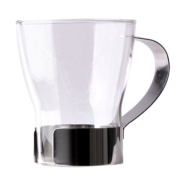 Чашка кофейная; термост.стекло,сталь; 375мл; D=86,H=100,L=117мм; прозр.,серебрян.