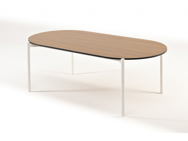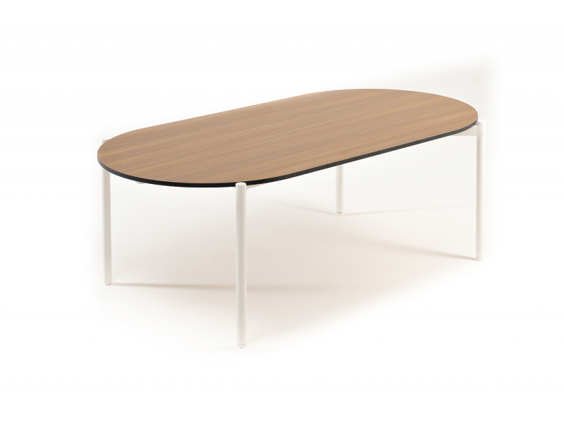 "Диего" журнальный стол из HPL 120х60 H40, каркас белый муар, цвет "дуб"