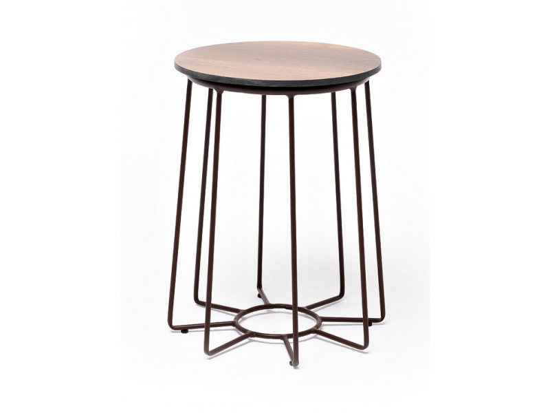 Описание "Эквадор" журнальный стол из HPL круглый Ø40 H55, каркас из алюминия коричневый (RAL 8016) муар, цвет столешницы "дуб"