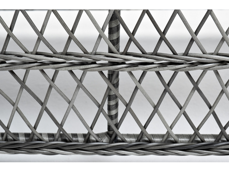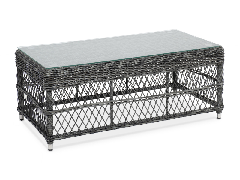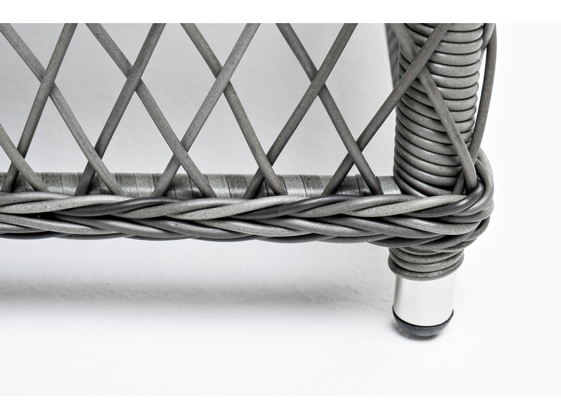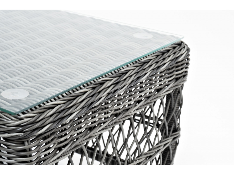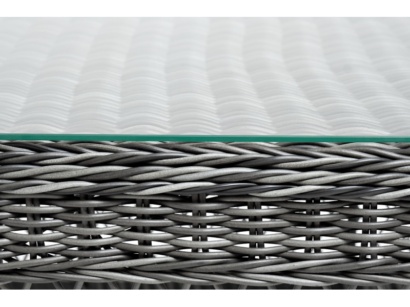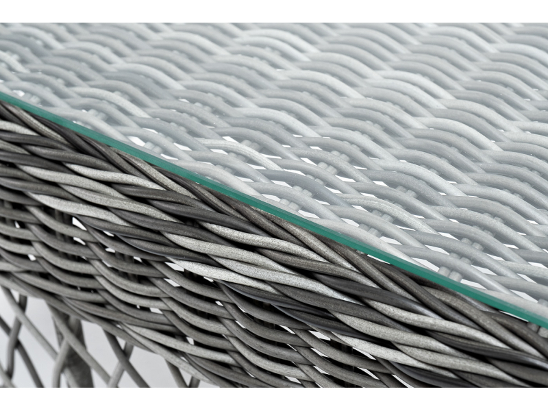 Каркас столика изготовлен из алюминия, вручную оплетенного круглым искусственным ротангом.