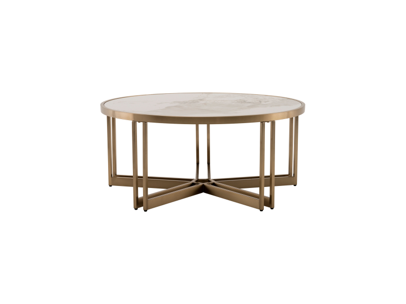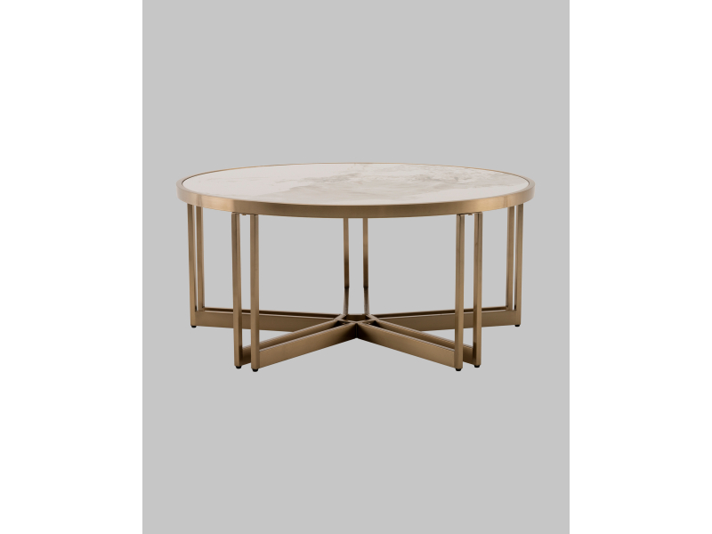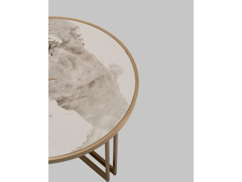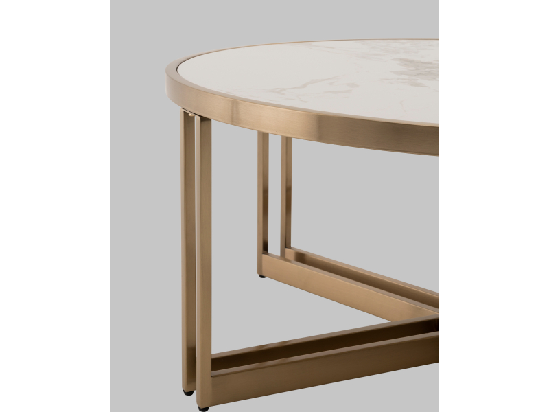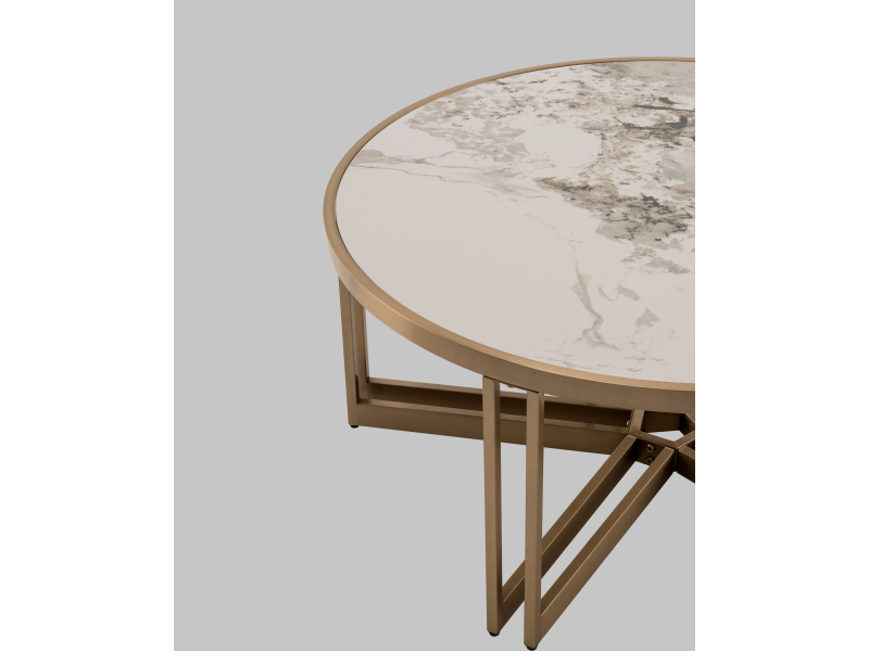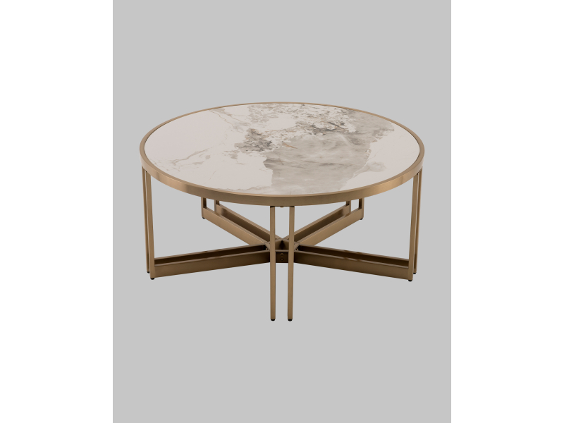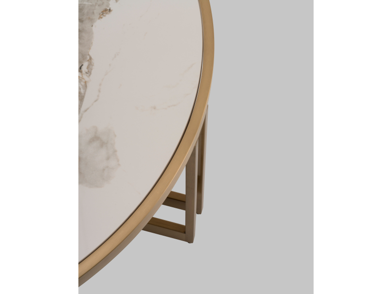 Журнальный столик Алиада 90х90 см светлая керамика сталь шампань