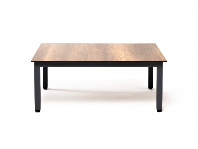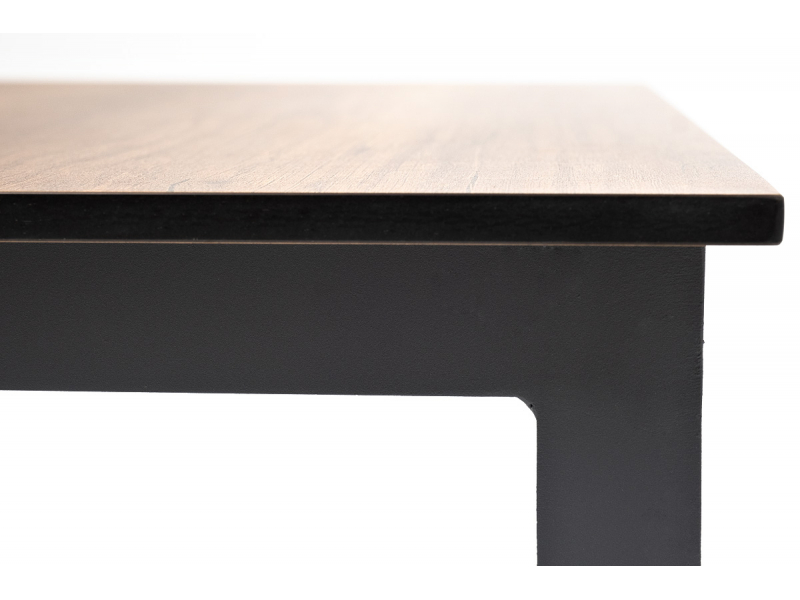 Каркас журнального столика изготовлен из алюминия, окрашенного в цвет темно-серый (RAL 7024). Столешница - из высококачественного монолитного компакт-пластик HPL, цвет «дуб».