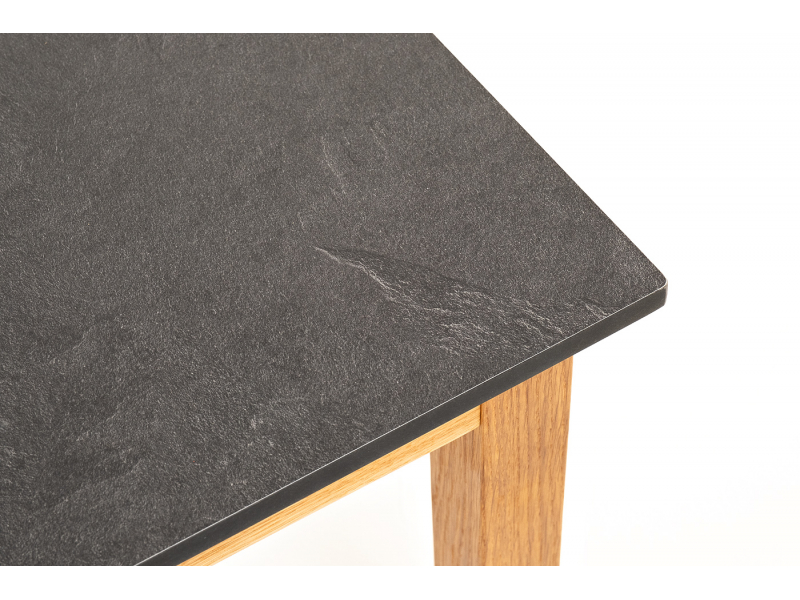 Основание журнального столика - дуб. Столешница - из высококачественного монолитного компакт-пластик HPL, цвет «серый гранит». Устойчив к царапинам и другим механическим повреждениям, что позволяет сохранить внешний вид стола на долгое время.