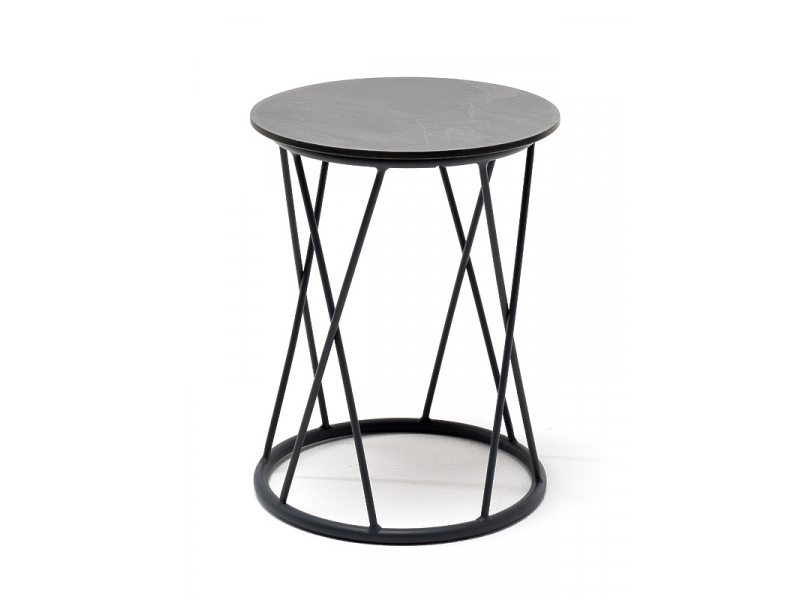 Описание "Колумбия" журнальный стол из HPL круглый Ø40 H55, каркас из алюминия темно-серый (RAL 7024), цвет столешницы "серый гранит"