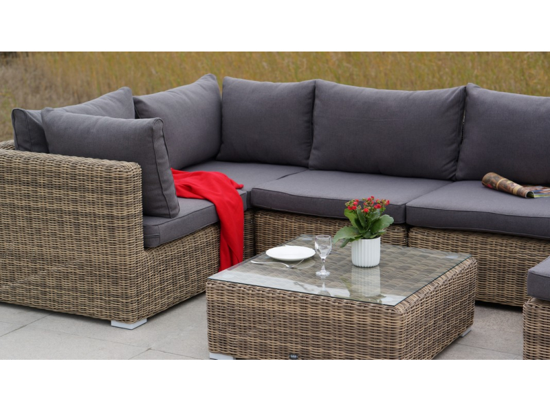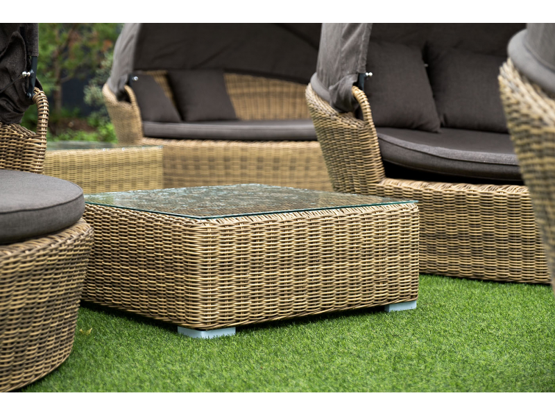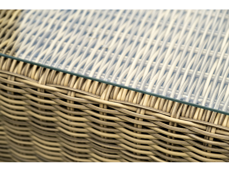 Компактные габариты позволяют удобно разместить мебельный элемент в месте с ограниченным свободным пространством. Столик имеет прочный алюминиевый каркас. Ручное круглое плетение сделано из искусственного ротанга и представлено в соломенном цвете.