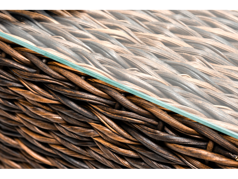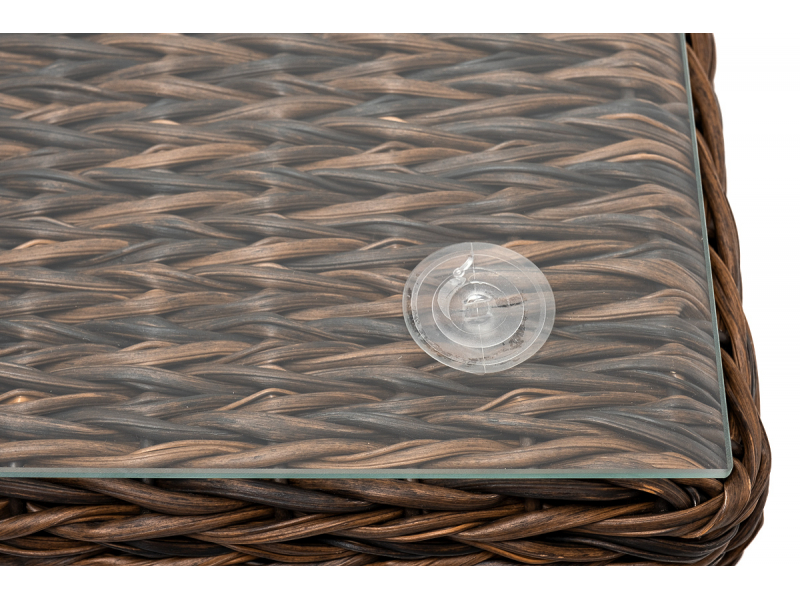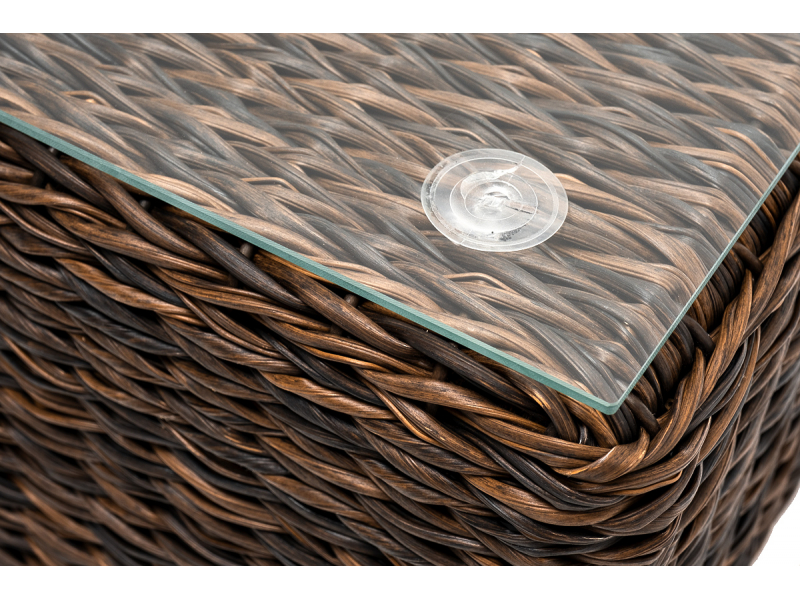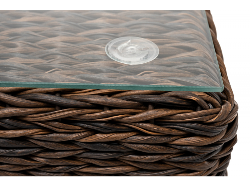 Размер модели – 740×740×300 мм. Компактные габариты позволяют удобно разместить мебельный элемент в месте с ограниченным свободным пространством. Столик имеет прочный алюминиевый каркас. Ручное плетение вида "гиацинт" сделано из искусственного ротанга и представлено в коричневом цвете.