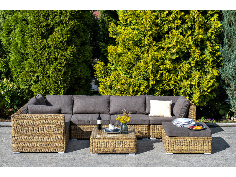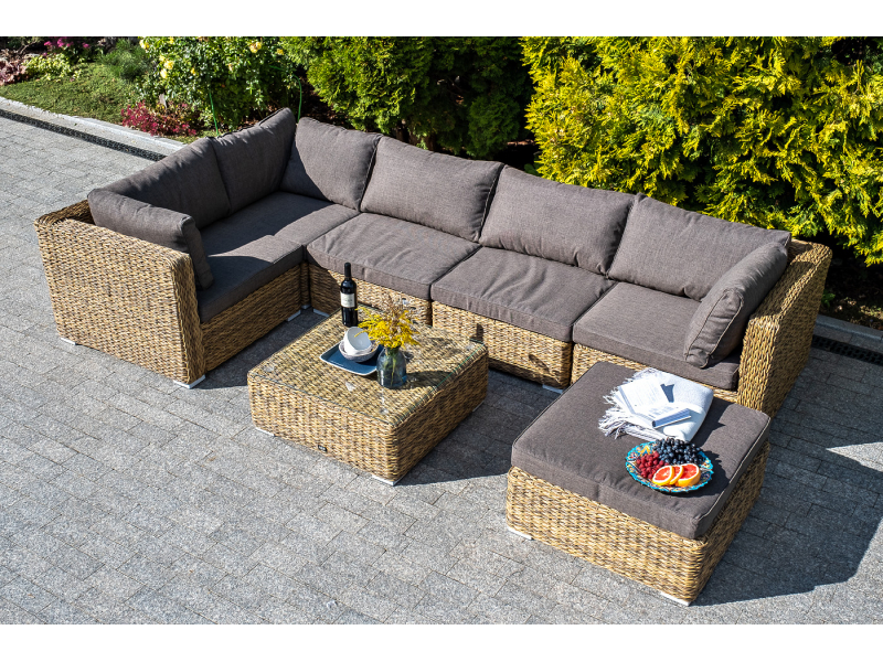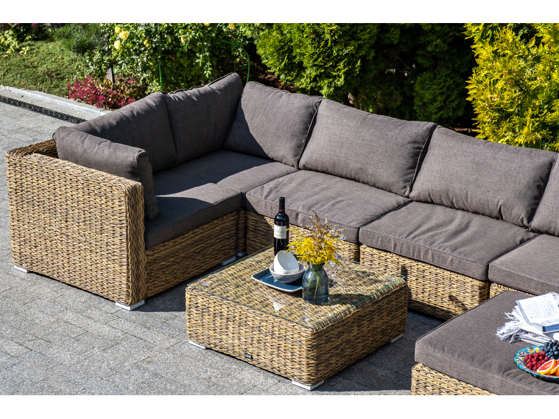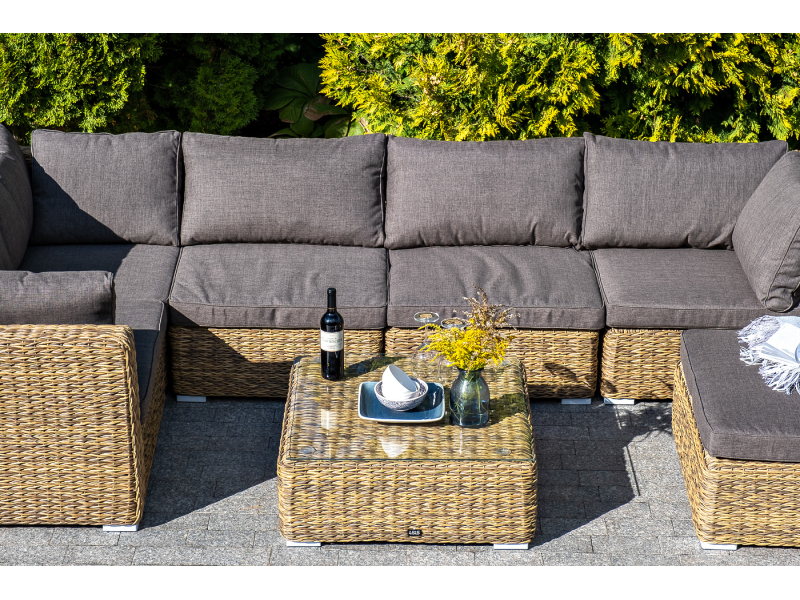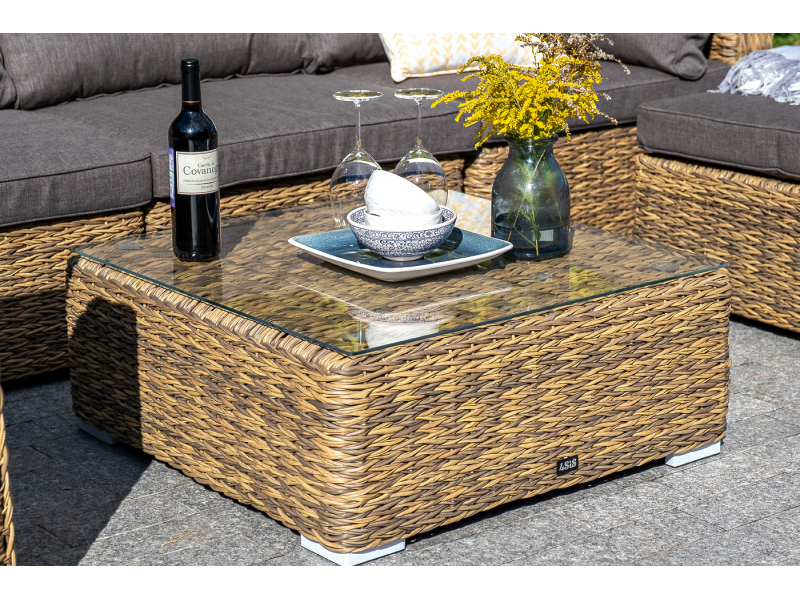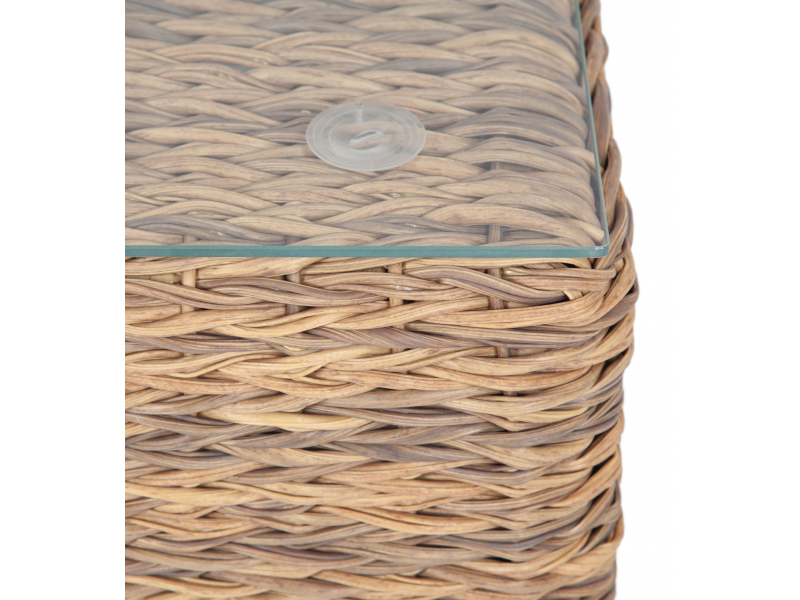 Размер модели – 740×740×300 мм. Компактные габариты позволяют удобно разместить мебельный элемент в месте с ограниченным свободным пространством. Столик имеет прочный алюминиевый каркас. Ручное плетение вида "гиацинт" сделано из искусственного ротанга и представлено в соломенном цвете.