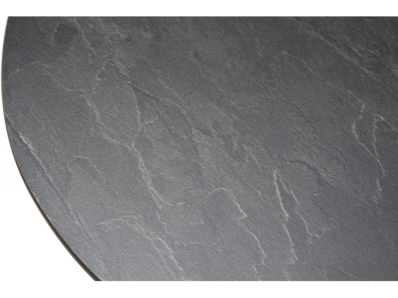 Круглый журнальный столик «Сантьяго» каркас изготовлен из стали, окрашенного в темно-серый цвет. Столешница выполнена из высококачественного монолитного компакт-пластика HPL, толщиной 12 мм. Цвет столешницы - «серый гранит».