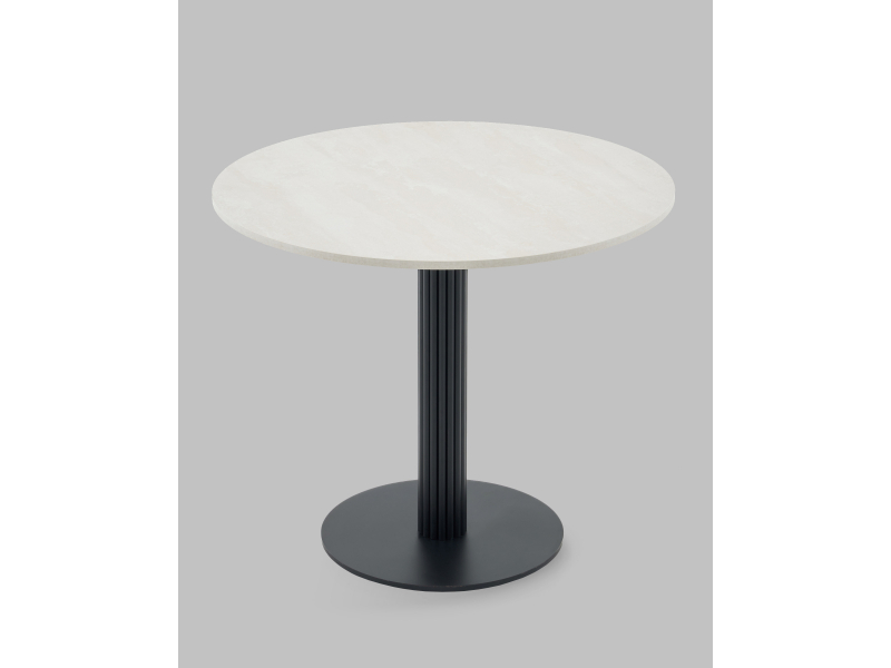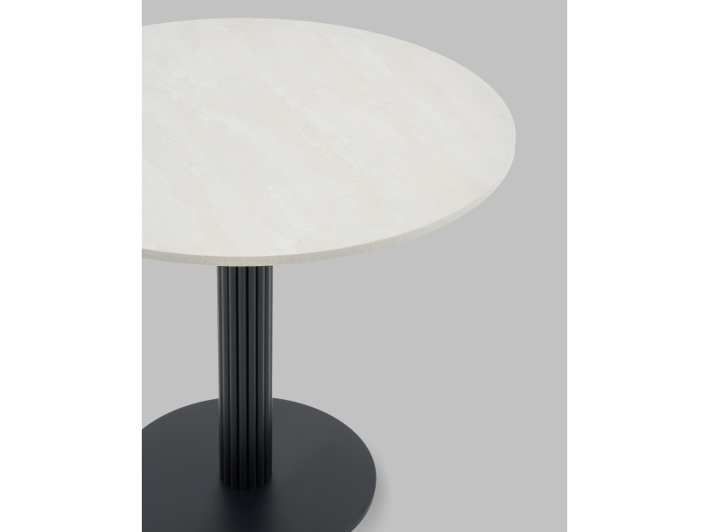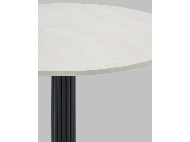 Стол круглый Фризбин D90, столешница МДФ ледяной камень, основание металл черный
