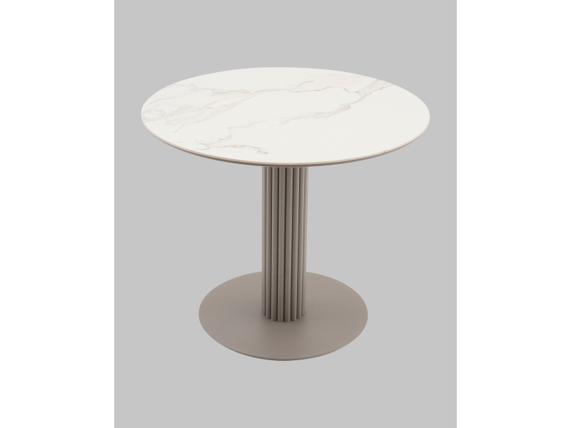 Стол круглый Терралино D90 верх керамика белый матовый, основание металл латте