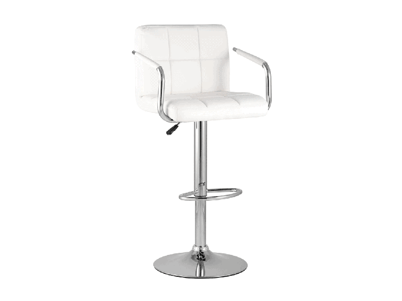 Материалы: хромированный металл, газ-лифт, фанера, искусственная кожа PU. Регулировка высоты 63-83 см Максимальная нагрузка на газ-лифт до 100 кг. Мягкий барный стул с подлокотниками в стиле баухаус. Стул снабжен поворотно подъемным механизмом газ-лифт. Обивка сиденья — искусственная кожа. Идеальное решение для домашнего бара.