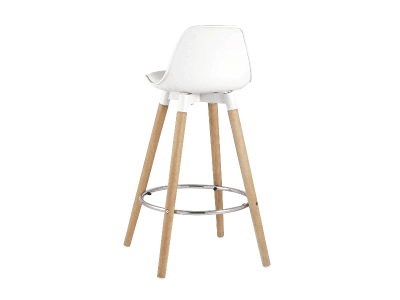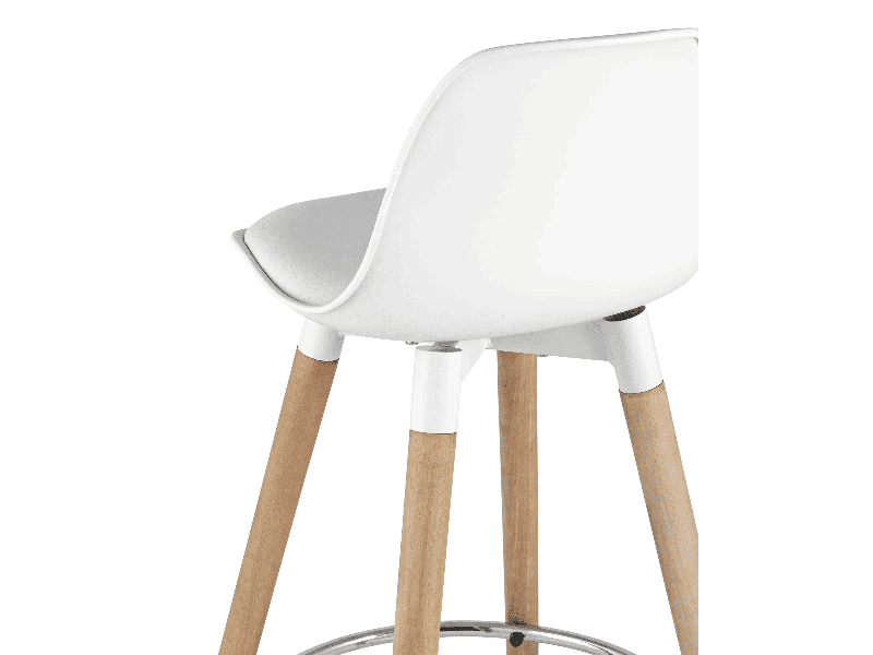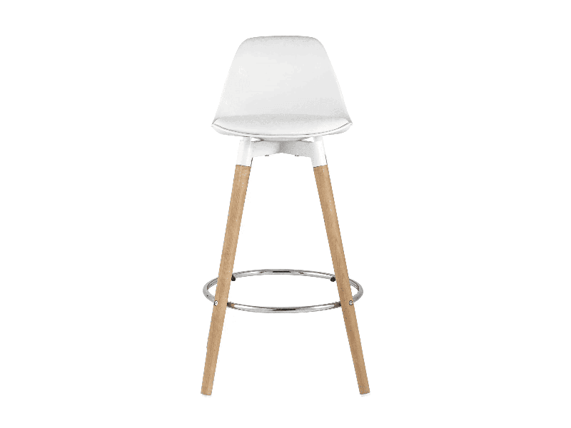 Для стула «Мартин» использовано несколько материалов. Сиденье обтянуто износостойкой PU-кожей молочно-белого цвета, ножки каркаса выполнены из натурального светлого дерева, а опорная планка-подножка основания в форме кольца – из хромированного металла. Модель поставляется в разобранном виде в картонной фабричной упаковке.