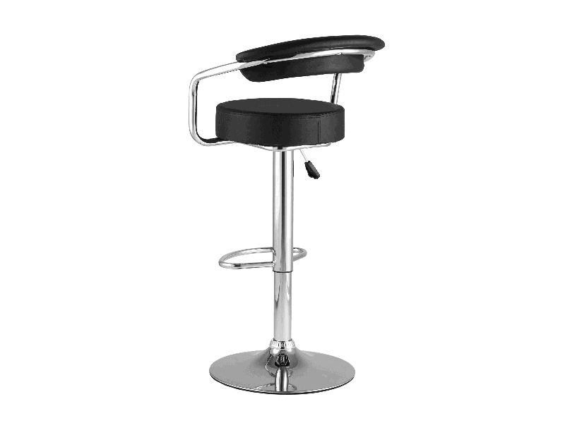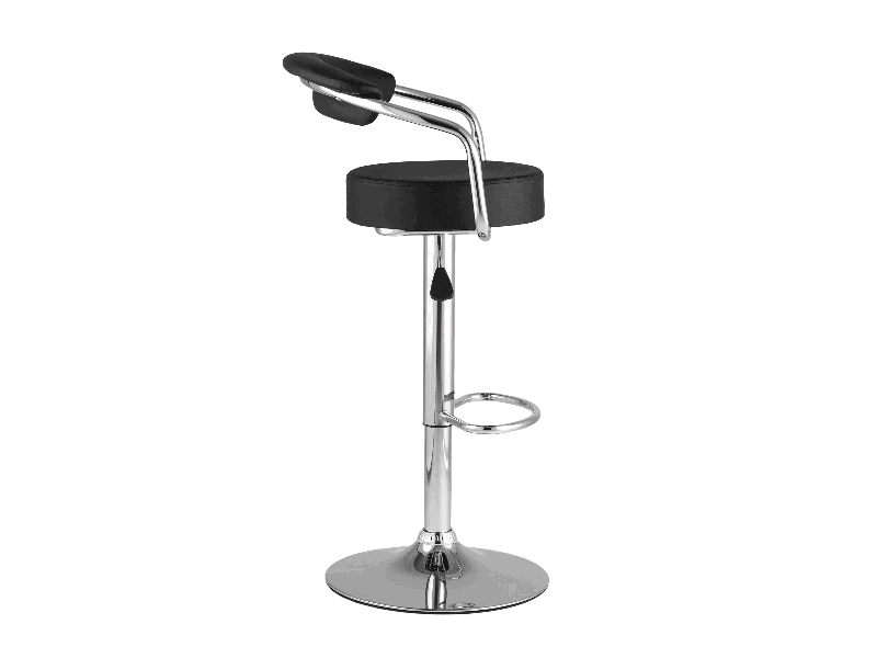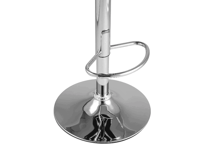 Каркас с подножкой выполнен из хромированного металла, который пользуется популярностью благодаря повышенной надежности в эксплуатации, влагостойкости и антикоррозийности, стильному и эстетичному внешнему виду. Для удобства использования он оснащен газ-лифтом – механизмом регулировки высоты (поднимается до 20 см). Сиденье вращается на 360 градусов. Отличительная черта модели – металлическая база с диаметром 410 мм, что делает ее более устойчивой в сравнении с другими модификациями.