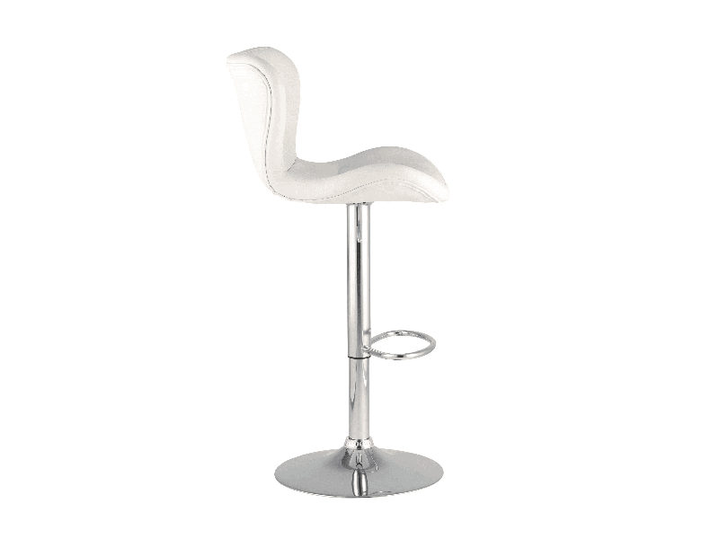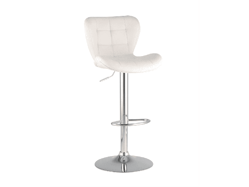 Мягкое сиденье стула выполнено из белой PU-кожи с минималистичной прострочкой крупными прямоугольниками вдоль самого сиденья и спинки, цельный каркас с широким устойчивым основанием – из блестящего хромированного металла. Благодаря выраженному плавному скату от основания к спинке на стуле можно удобно устроиться даже без подлокотников. Доставляется разобранным в компактной картонной упаковке, инструкция по сборке и сертификаты прилагаются.