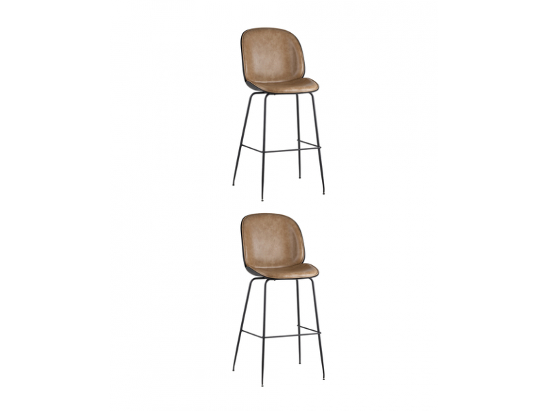 Комплект из двух барных стульев Beetle со спинкой бежевый, экокожа, каркас металлический 2 шт