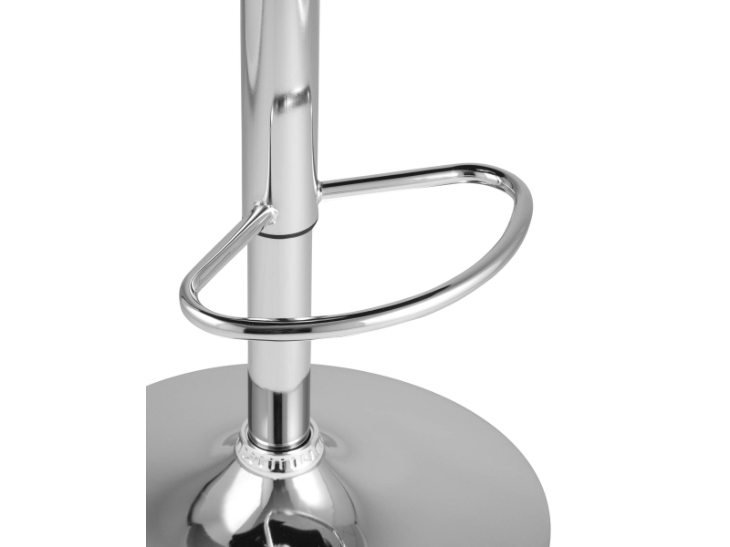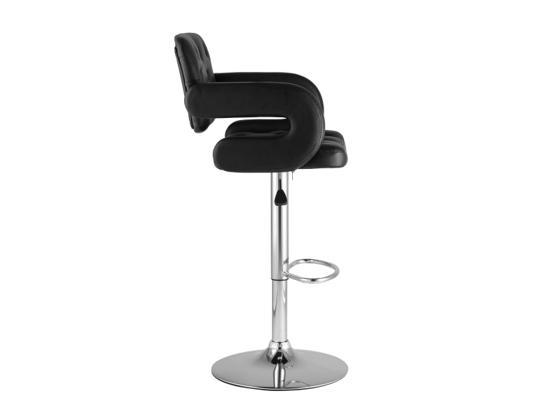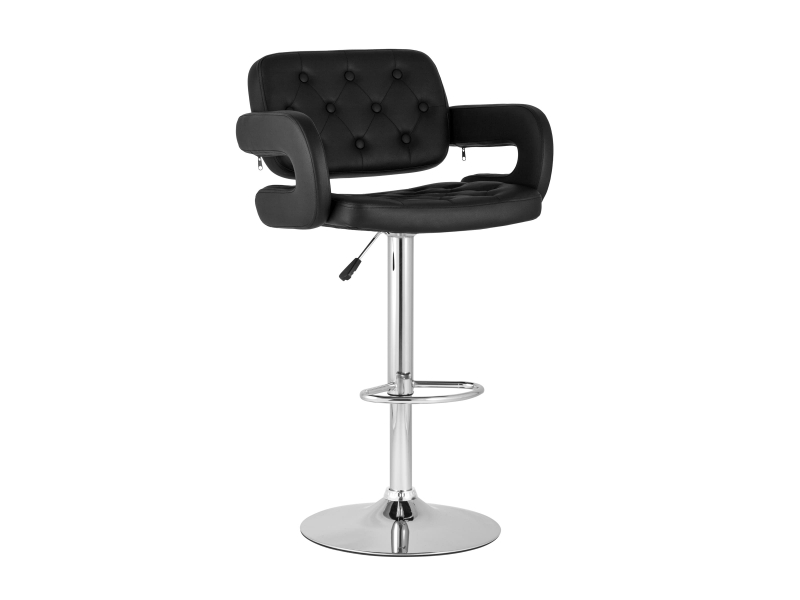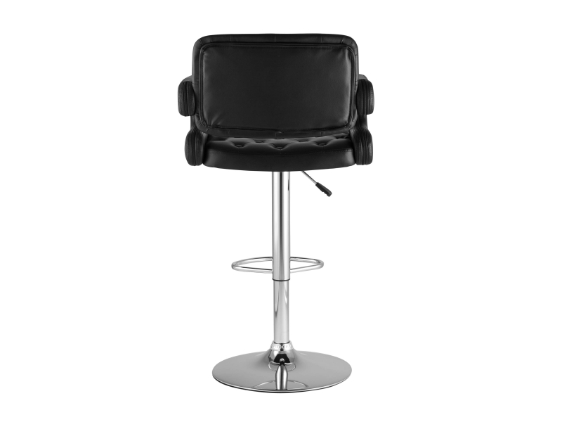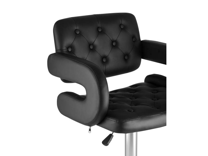 Для обивки сиденья барного стула использована PU-кожа – искусственный материал с высокой прочностью, износостойкостью и естественной фактурой. Каретная стяжка в оформлении спинки сиденья и черный цвет сочетаются с металлическим блеском гладкого хромированного основания. Высота сиденья регулируется от 61 до 83 сантиметров - можно подогнать под барную стойку или столешницу любого размера.