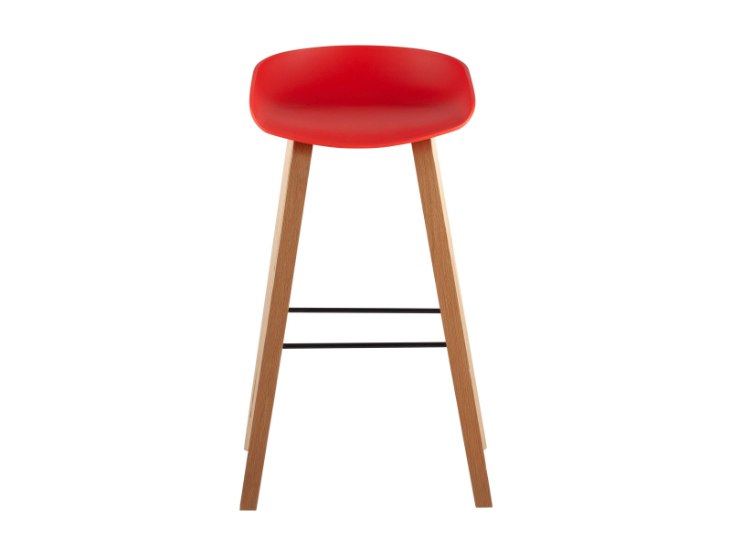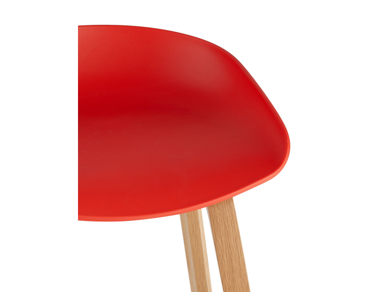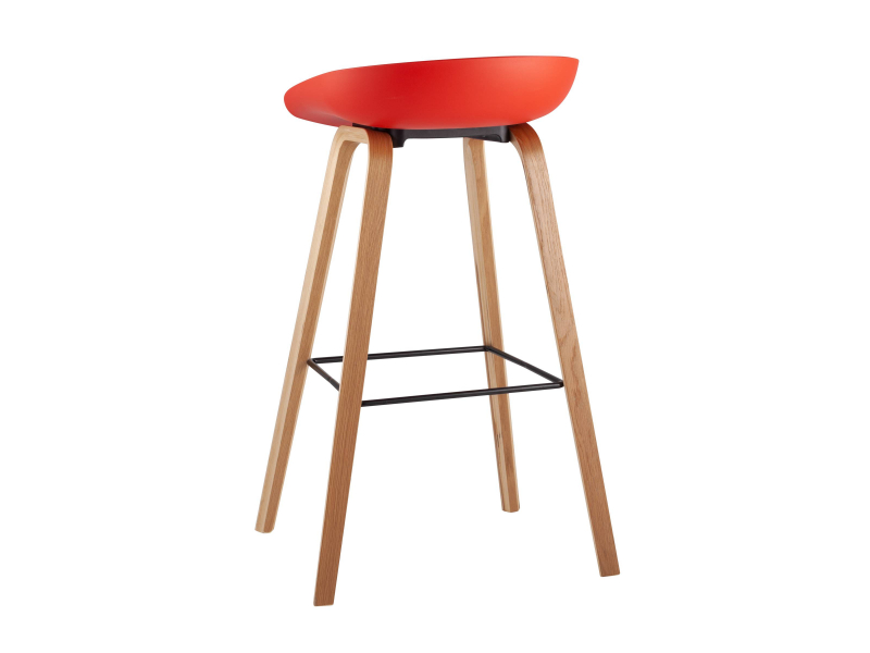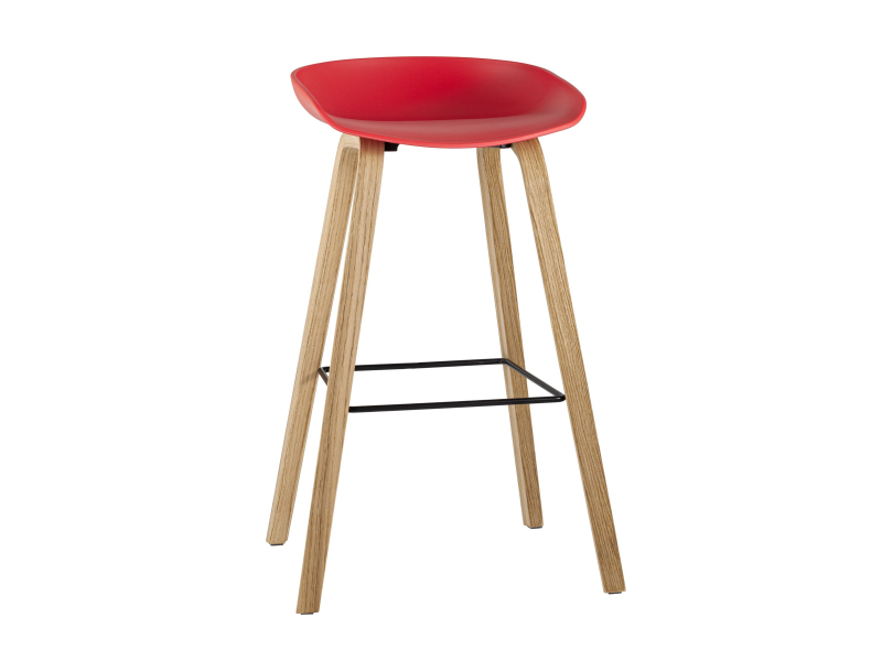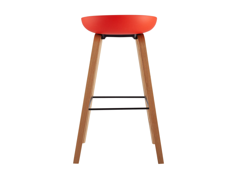 В дизайне модели «Либра» используется сочетание красного пластика и естественного оттенка натурального дерева – опоясывающая ножки опорная планка в тон сиденью уравновешивает цветовую комбинацию и подчеркивает модные геометрические формы барного стула. Высота соответствует стойке стандартной высоты.