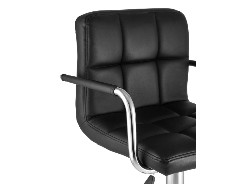 Материалы: хромированный металл, газ-лифт, фанера, искусственная кожа PU. Регулировка высоты 63-83 см Максимальная нагрузка на газ-лифт до 100 кг. Мягкий барный стул с подлокотниками в стиле баухаус. Стул снабжен поворотно подъемным механизмом газ-лифт. Обивка сиденья — искусственная кожа. Идеальное решение для домашнего бара.