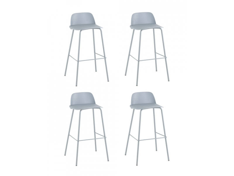 Комплект из четырех стульев барных Mist пластиковое сиденье, серо-голубой, ножки металл