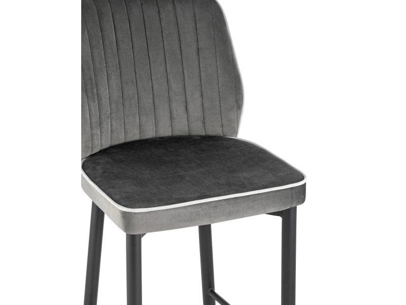 Интересное сочетание современного дизайна и вневременной мебельной классики. Обивка из мебельной ткани, мягкой, бархатистой и очень приятной на ощупь. Мебельная ткань велюр - очень практичная и устойчивая к истиранию. Ножки полубарного стула выполнены из металла и имеют удобную подножку.