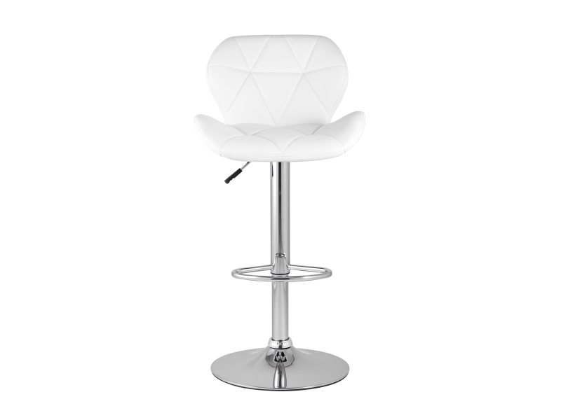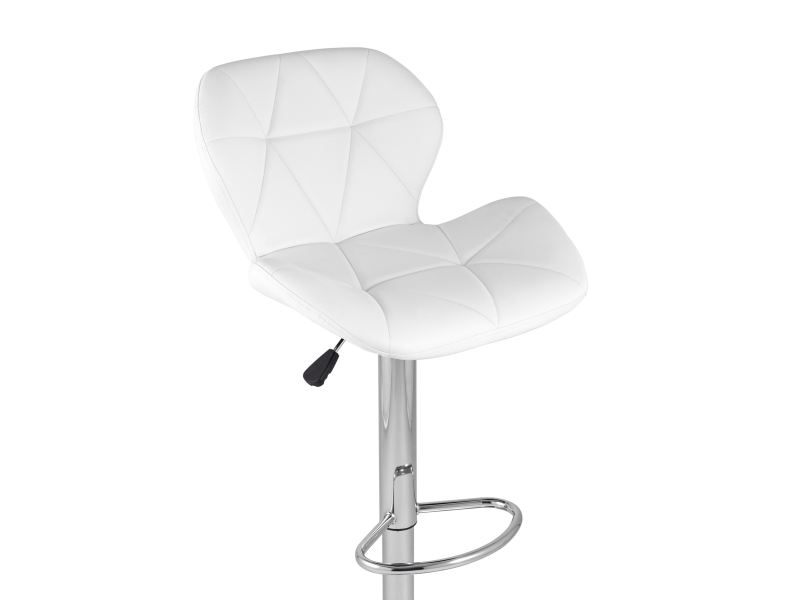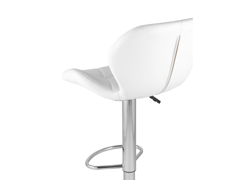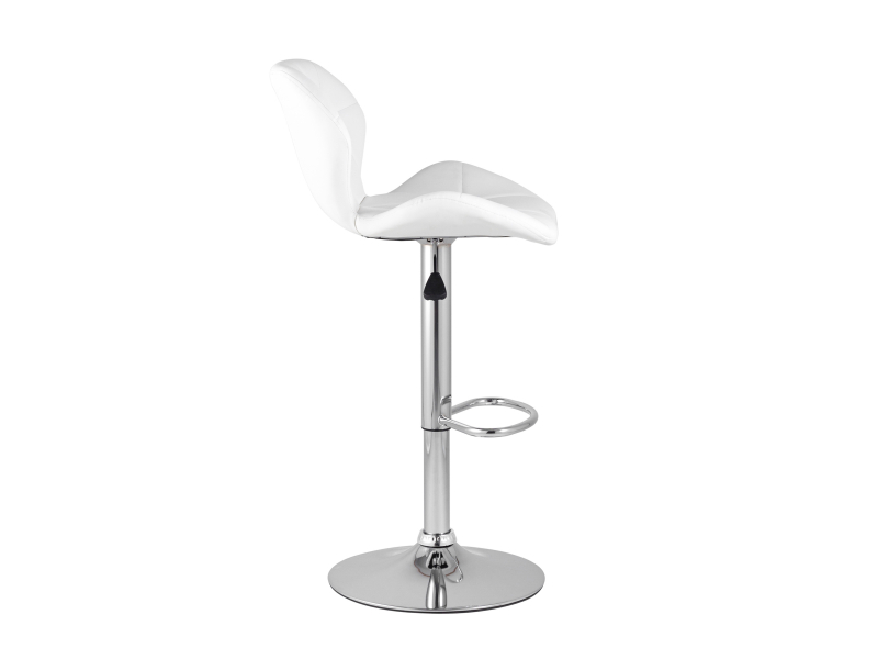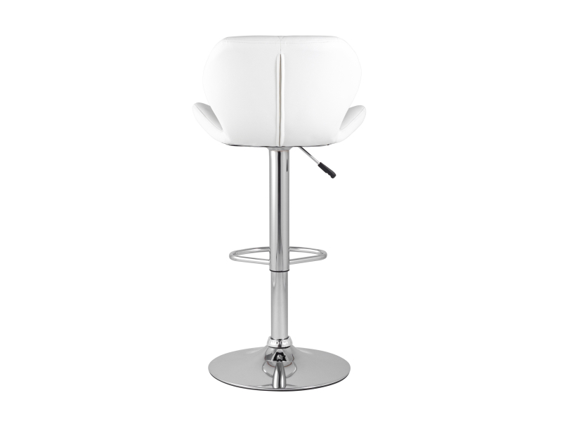 Спинка и сиденье обиты экокожей в белом цвете. Ножка выполнена из хромированного металла. Функция регулировки высоты сидения позволяет подобрать наиболее удобное положение.